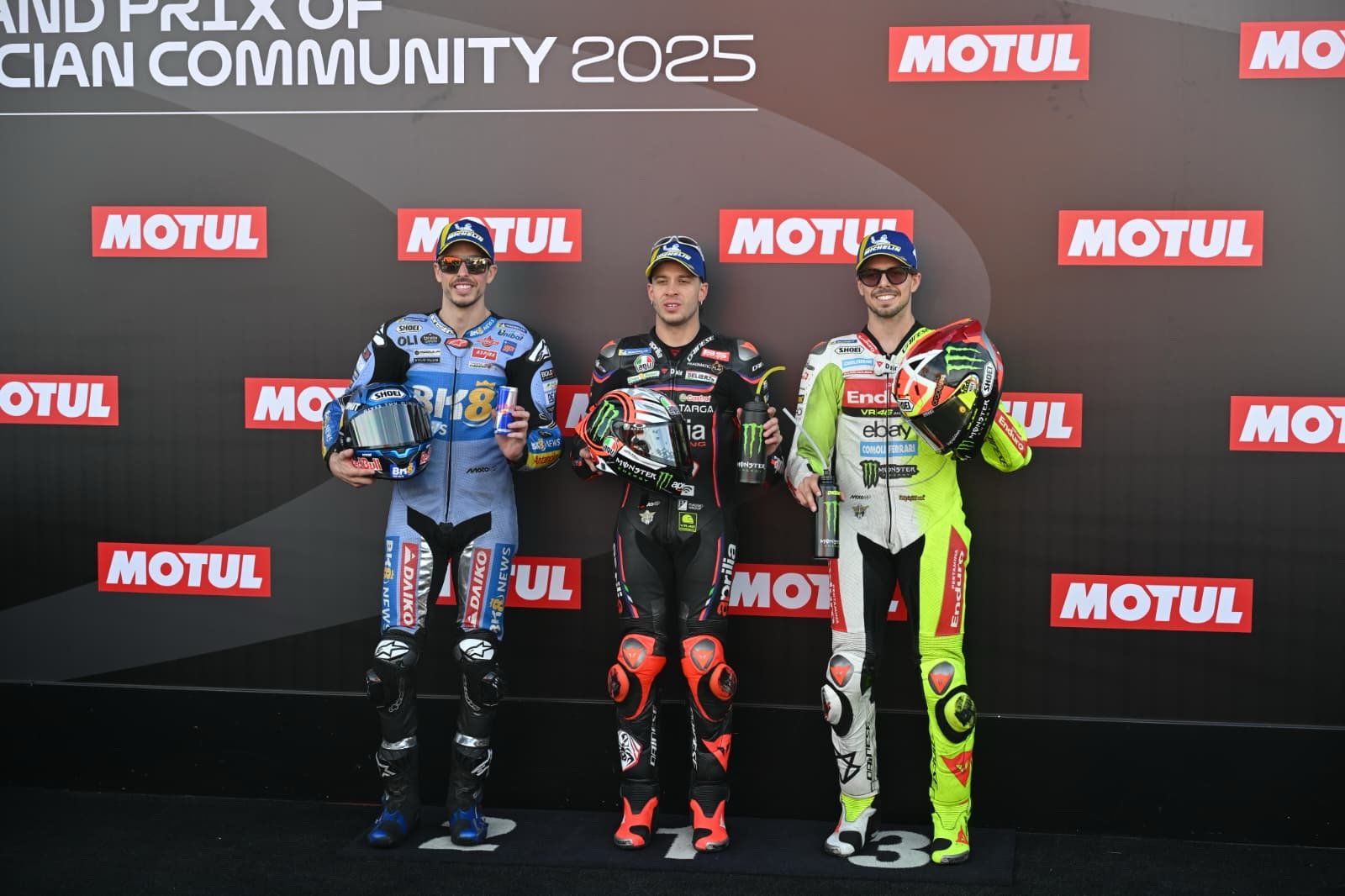 Sexto Morbidelli, séptimo Quartararo, octavo Binder y noveno Ogura cerrando la zona de puntos. Jorge Martín vigesimosegundo en su vuelta tras irse a una escapatoria y Viñales decimoctavo. Bagnaia decimocuarto, saldrá mañana decimosexto y desastre de las Hondas con la caída de Mir llevándose a Marini.