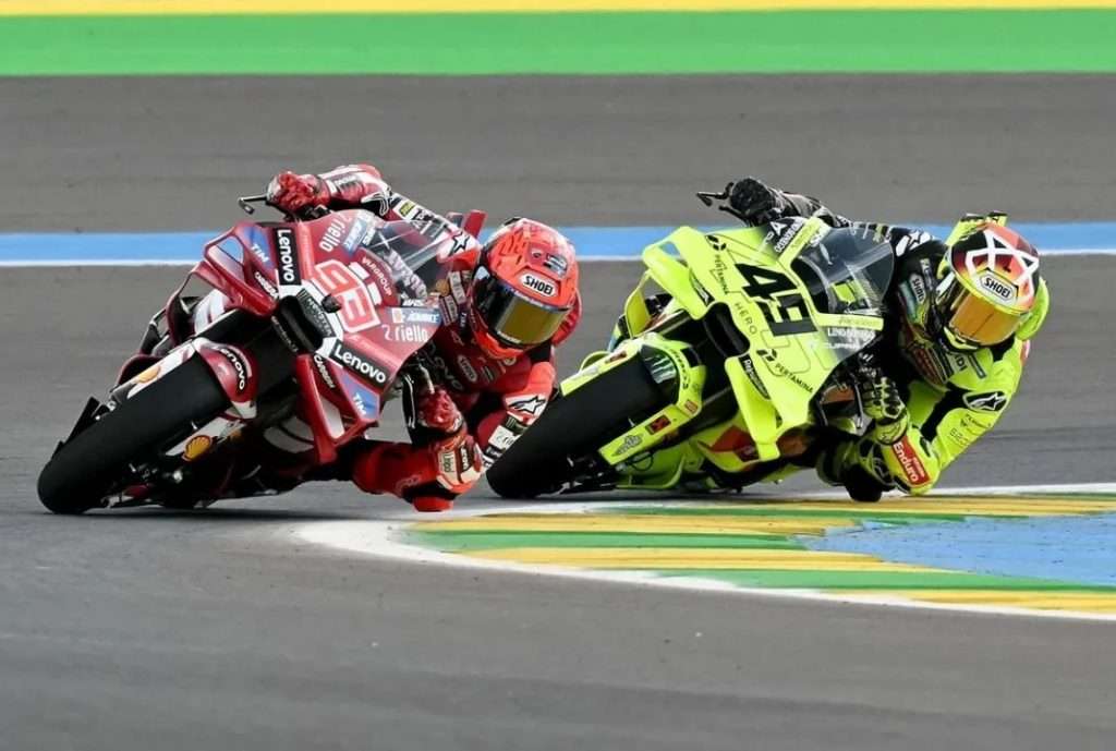 En la salida, Fabio Di Giannantonio defendió con uñas y dientes su posición de privilegio, mientras Márquez caía brevemente a la cuarta plaza tras verse superado por una sorprendente Yamaha en manos de Fabio Quartararo. No obstante, el de Cervera tardó poco en recuperar el ritmo y en la vuelta 3 ya rodaba segundo tras adelantar al francés.