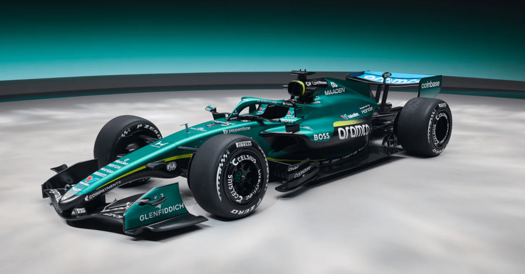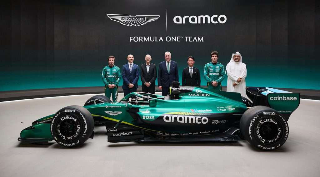 Esta «livery» nos presenta un coche en el que sigue predominando el «British Racing Green» característico de la marca, pero con más presencia de otros colores que otros años como el negro y el amarillo fluorescente en algunos detalles. El alerón trasero en azul completo y otros toques contrastados rompen con la tendencia de los diseños anteriores, y los logos de Aramco, Honda y Valvoline destacan la nueva asociación técnica y comercial del equipo.